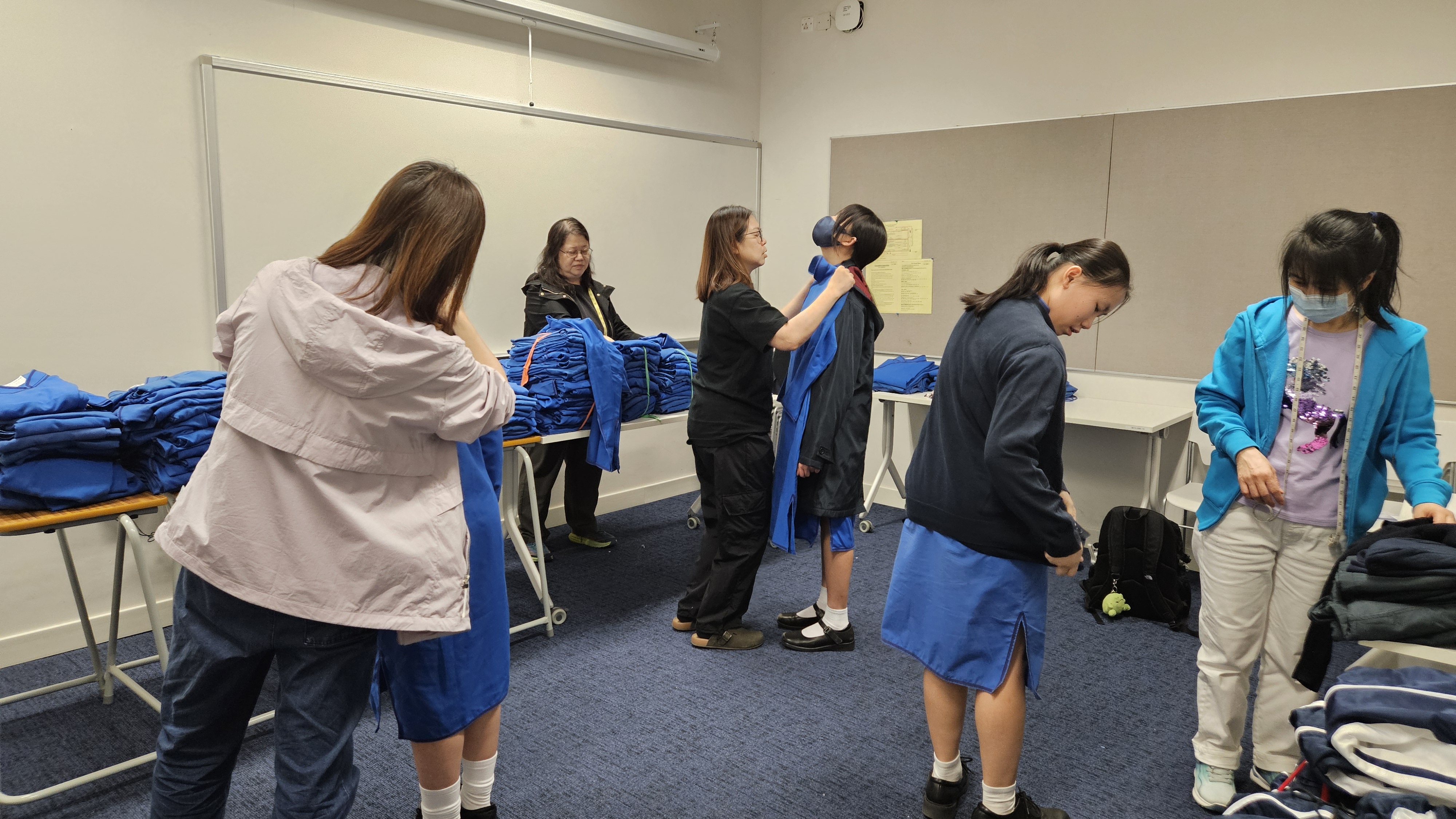 家長義工於11月10日將回收的校服整理,並於11月19日及20日將校服送予有需要之同學。